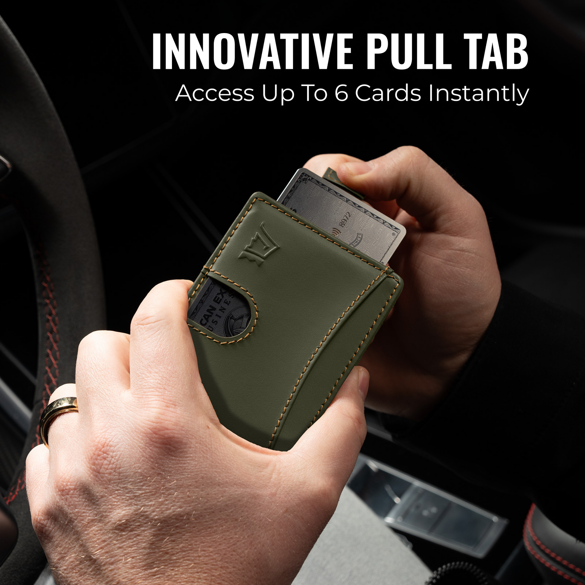 • Access up to 6 cards with the hidden pull strap