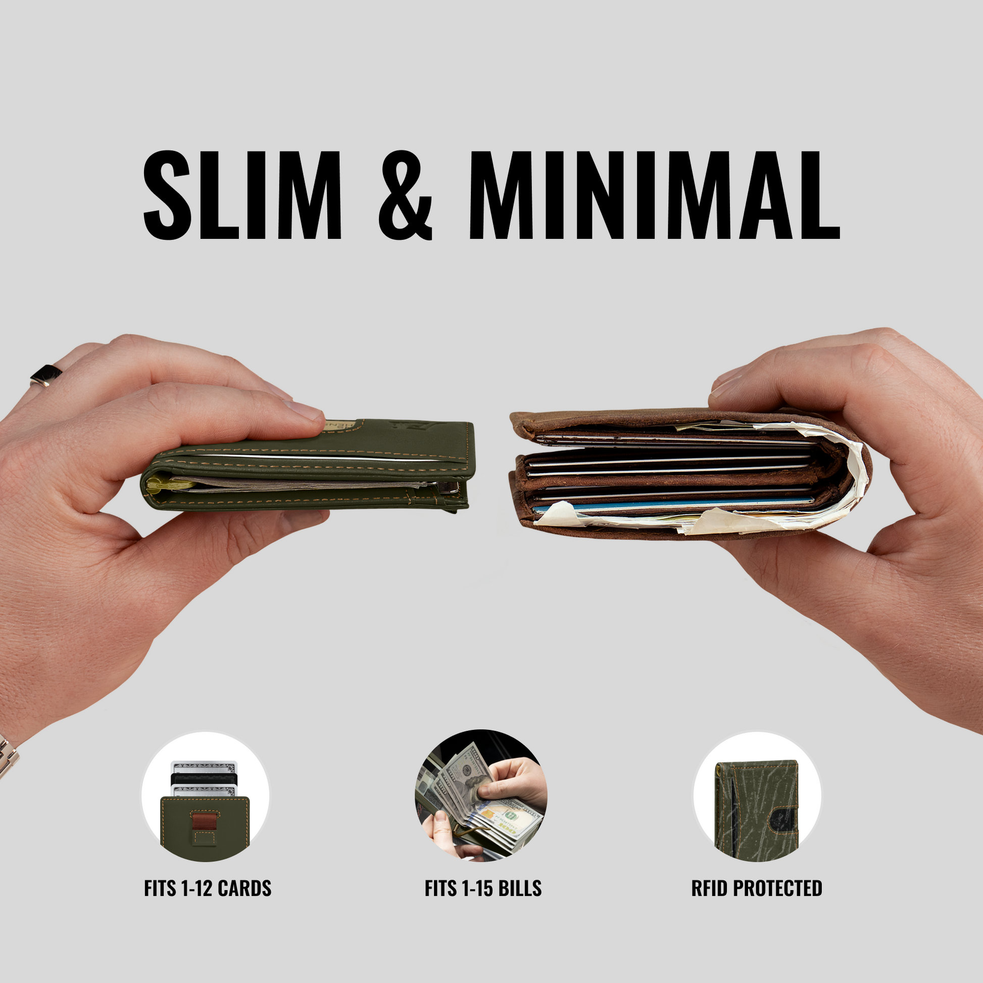 Expertly Designed Minimalist Bifold (Holds 1-12 Cards + Cash) (0.5 x 3.9 x 2.75 in)