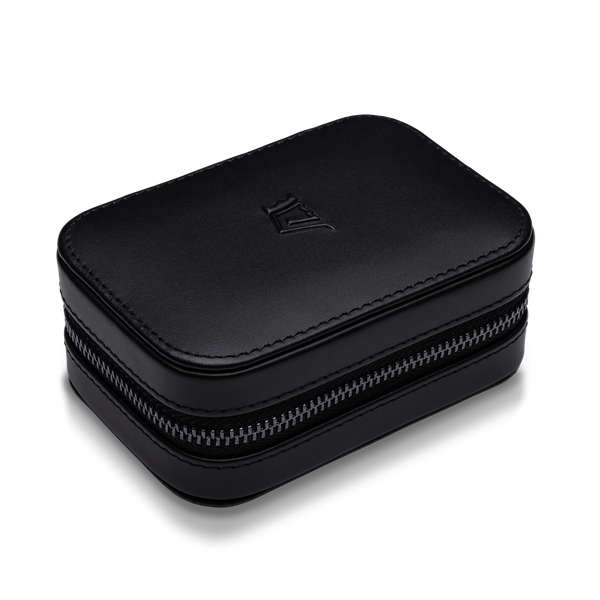 • Luxury Travel Case – Onyx Black Vegetable Tanned Leather with suede interior and dust cloth.